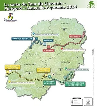 La 57e édition du Tour du Limousin Périgord Nouvelle-Aquitaine s’élancera, le mardi 13 août 2024, depuis Boisseuil. Au programme de cette édition 4 étapes en Haute-Vienne, dans la Creuse, la Dordogne et le Périgord.