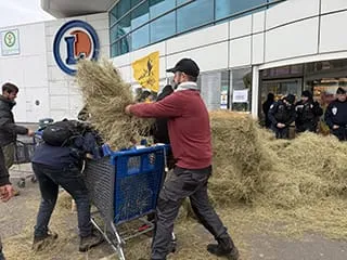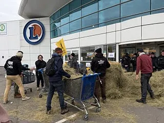 Le but aujourd’hui, de cette opération était d’entrer dans le magasin et de faire des caddies gratuits de produits importés ou vendus en dessous du prix rémunérateur.