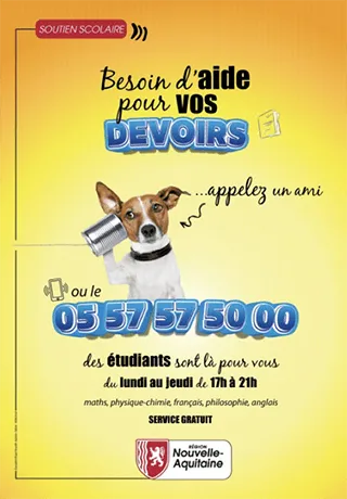La Région Nouvelle-Aquitaine propose dès le lundi 29 septembre 2025, la plateforme gratuite d’aides aux devoirs. Elle est accessible par téléphone (du lundi au jeudi), de 17h à 21h.