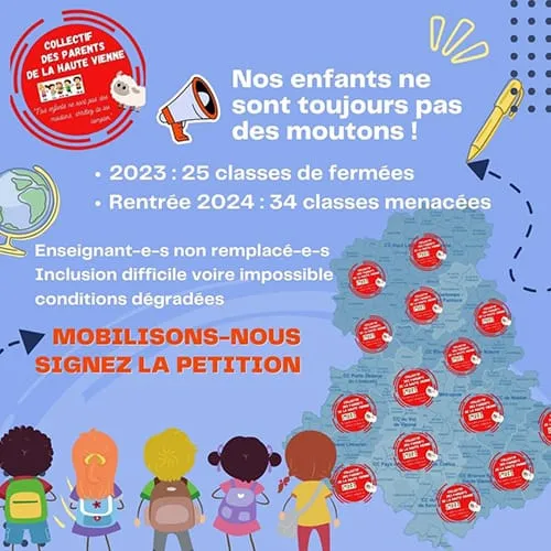 Depuis l'année dernière, un collectif de Parents d'élèves de la Haute-Vienne s'est créé pour faire remonter à l'éducation nationale les problématiques des fermetures de classe. Cette année une trentaine de communes adhérent au collectif.