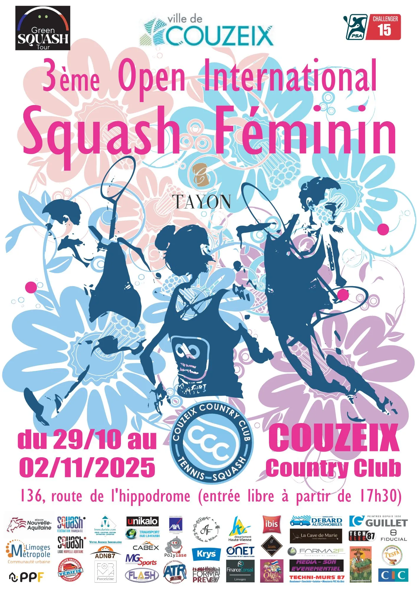Le Couzeix Country Squash va accueillir l’Open international de squash féminin, du 29 octobre au 2 novembre 2025.