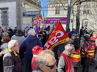 Mardi 1er avril 2025, près de 200 personnes se sont rassemblées devant les grilles du Conseil départemental de Haute-Vienne pour demander au Département l’arrêt des suppressions de postes, des fermetures de services et la case du secteur sanitaire et social.