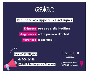 Mardi 27 et mercredi 28 juin 2023, Ester & la startup CO’LEC organisent une collecte spéciale d’appareils électriques usagés et/ou inutilisés. Le but est d’en récolter un maximum afin de les réparer, les restaurer, les remettre sur le marché, ou simplement les recycler. L’objectif est de leur donner une seconde vie et de faire du bien à la planète !