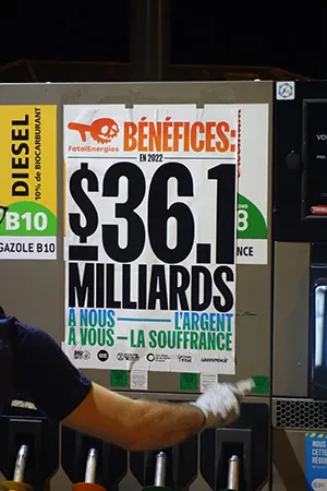 Plusieurs affiches ont été collées sur les stations-services. Les faits se sont déroulés dans la nuit de vendredi 1er au samedi 2 septembre 2023. À Limoges, ce sont 4 stations Total Énergies qui ont été la cible du collectif (avenue du Général Leclerc, route de Toulouse, boulevard Bel-Air et sur la route d’Aixe-sur-Vienne).