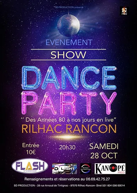 L’association SD Production organise le « Show Dance Party » des années 80 à nos jours en live le samedi 28 octobre à 20h30 à Rilhac Rancon.