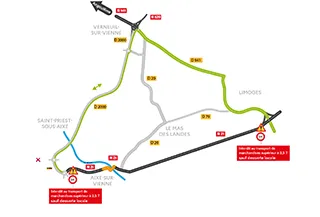 À compter du 8 août 2025 , la circulation est uniquement rétablie pour les véhicules légers, sous circulation alternée. Les poids lourds doivent emprunter la déviation en vigueur depuis le 28 juillet, via la D941 et la D2000 pour traverser la commune d’Aixe-sur-Vienne.