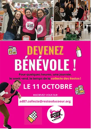 Les Restos du Cœur de la Haute-Vienne organisent, ce samedi 11 octobre 2025, une collecte départementale exceptionnelle dans les magasins du département.